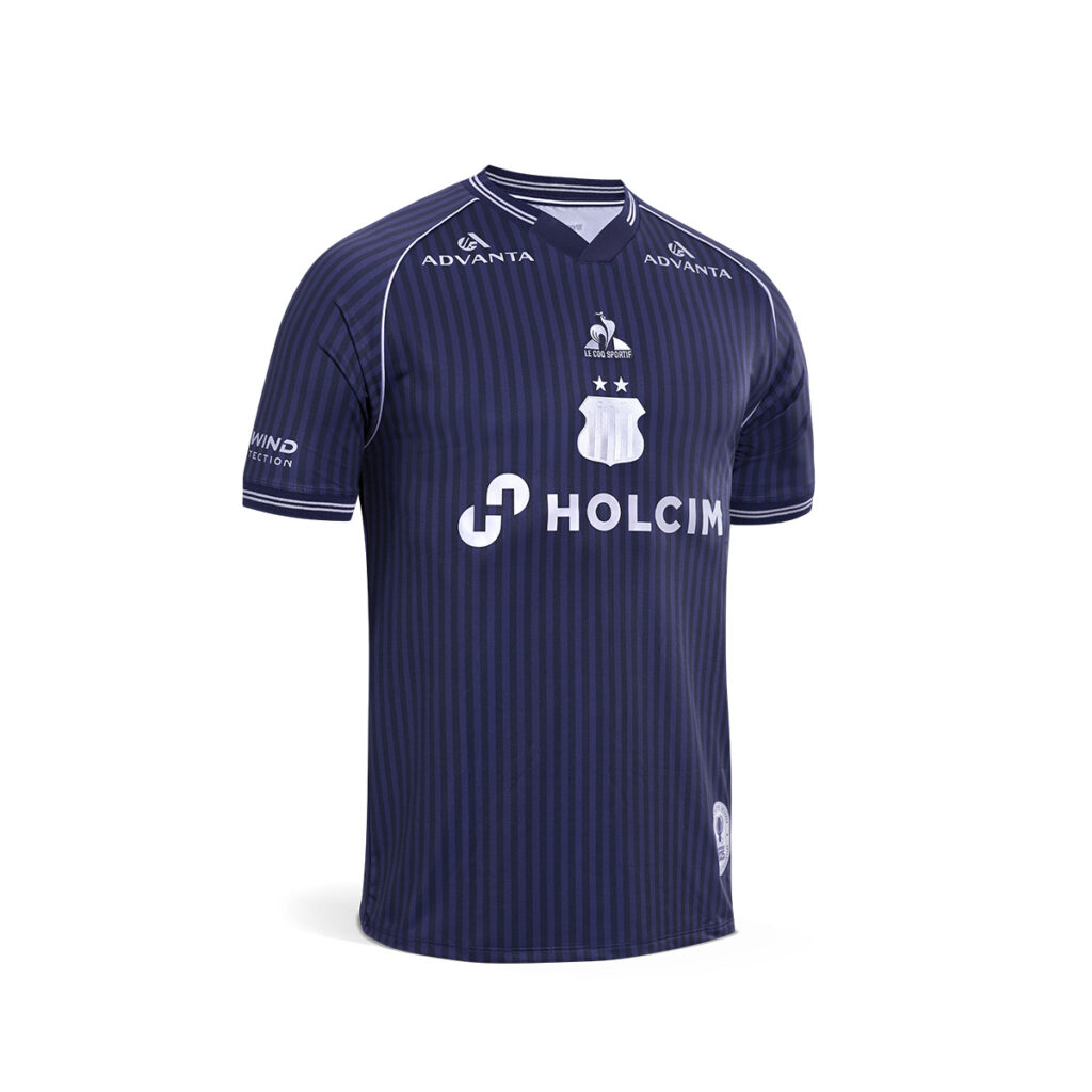 El azul noche elegido tono principal aporta sobriedad, en contraste con detalles en plata que refuerzan la idea de sofisticación y modernidad. Tanto el escudo de Talleres como el logo de Le Coq Sportif se presentan en TPU con un acabado metálico, logrando relieve, brillo y un acabado distintivo en cada prenda.