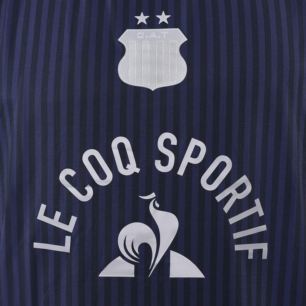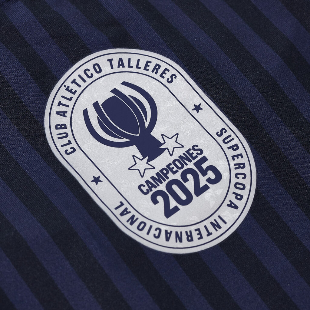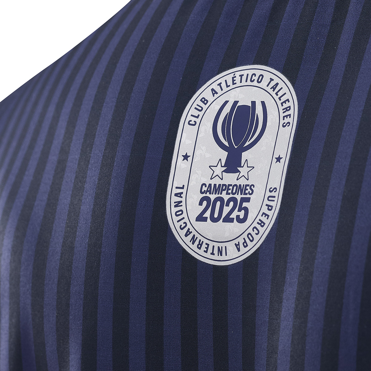 Sudadera deportiva 2025 Le Coq Sportif con estampado de líneas azul y azul marino, Escudo Dos Estrellas Plateado e insignia CAMPEONES SUPERCOPA INTERNACIONAL 2025 .-