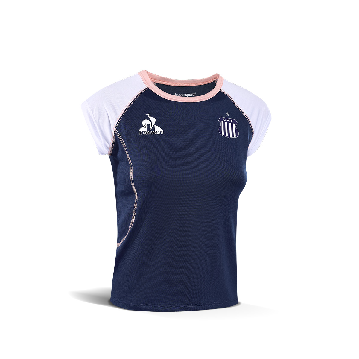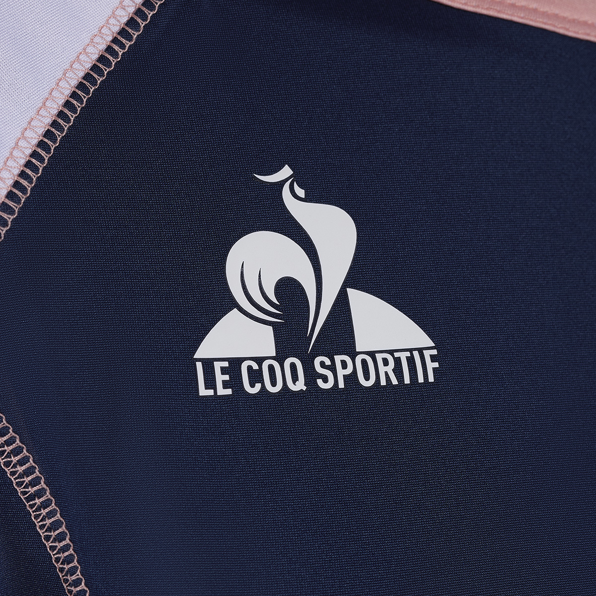 Musculosa Mujer Le Coq Sportif Temporada 2025 de color azul marino con detalles en color blanco y coral.-