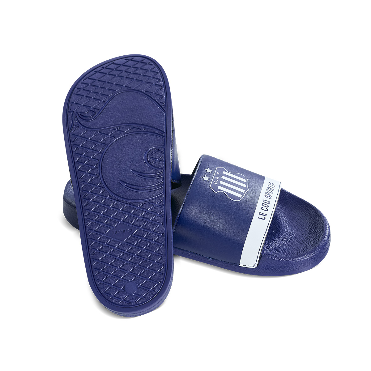 Ojotas Talleres Le Coq Sportif Temporada 2026 color azul marino con detalles en color blanco y escudo con dos estrellas ⭐⭐