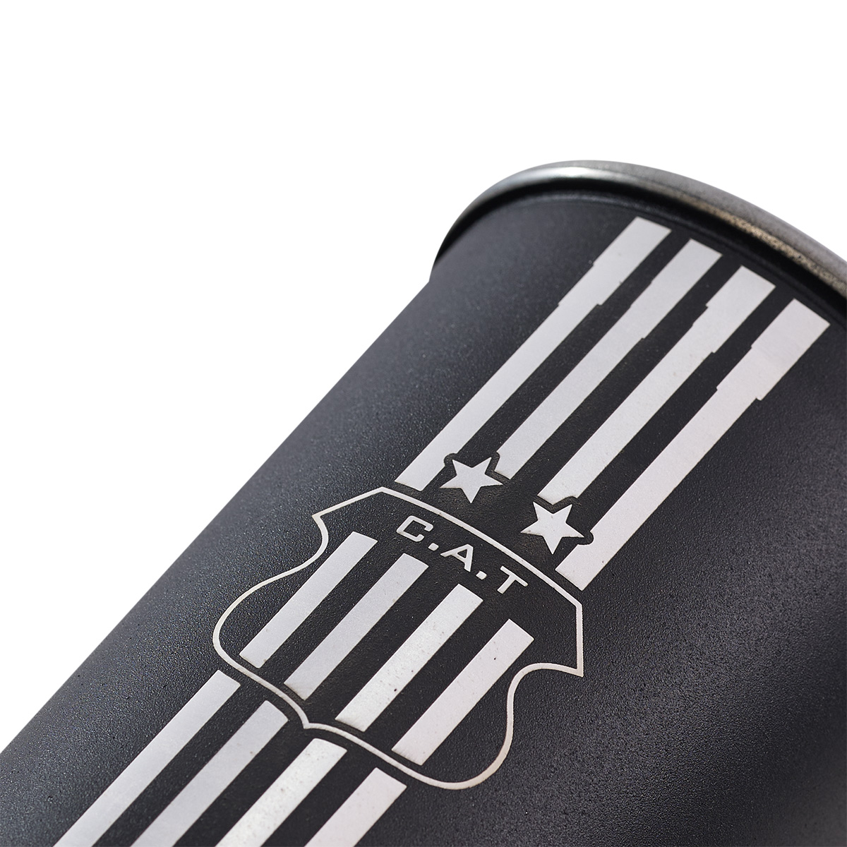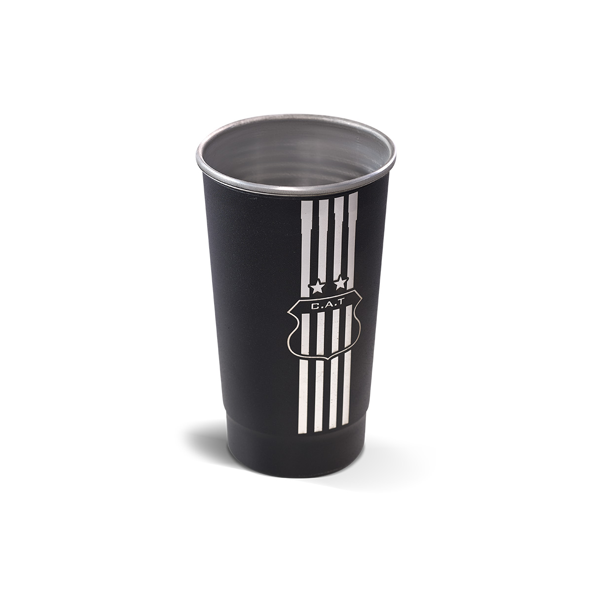 Vaso Talleres, de acero Inoxidable color negro con inscripciones CAT grabadas.